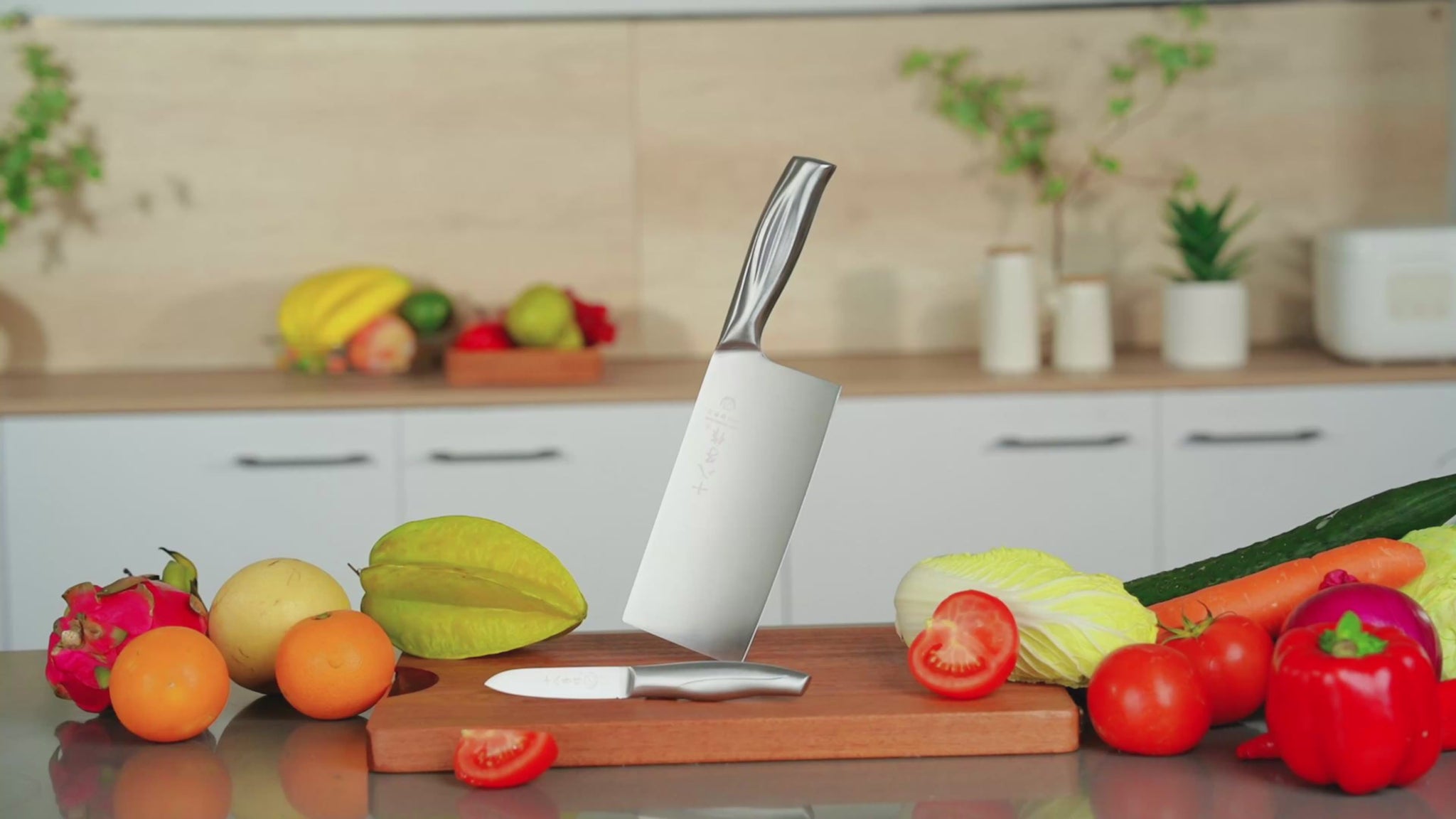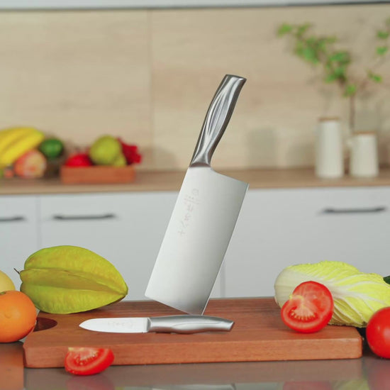 - 【Multifunctional knife set】This kitchen knife set includes 2 razor-sharp knives: a cleaver knife and a fruit knife.Whether you're slicing meat,vegetables,dicing herbs,or prepping fruits, each kitchen knife of this set is designed to handle a variety of tasks effortlessly. Perfect for both professional chefs and home cooking enthusiasts.