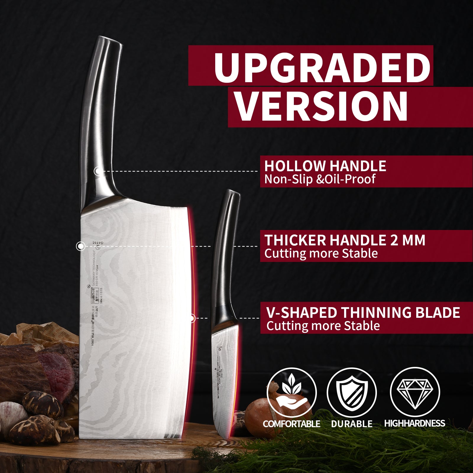 - 【Professional Knife Set】This kitchen knife set includes 2 razor-sharp knives: a 7 inches cleaver knife, a 5 inches paring knife.Whether you're slicing meat,vegetables,dicing herbs,or prepping fruits, each kitchen knife of this set is designed to handle a variety of tasks effortlessly. Perfect for both professional chefs and home cooking enthusiasts.