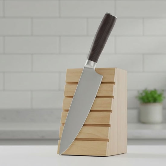 - High-carbon stainless steel blade - It is made from high-quality stainless steel that maintains the blade edge for a long time. It comes with a HRC (Rockwell Hardness Scale) of 56-58 to keep the sharpness of the edge and provides excellent performances in sharpness, durability and corrosion resistance.