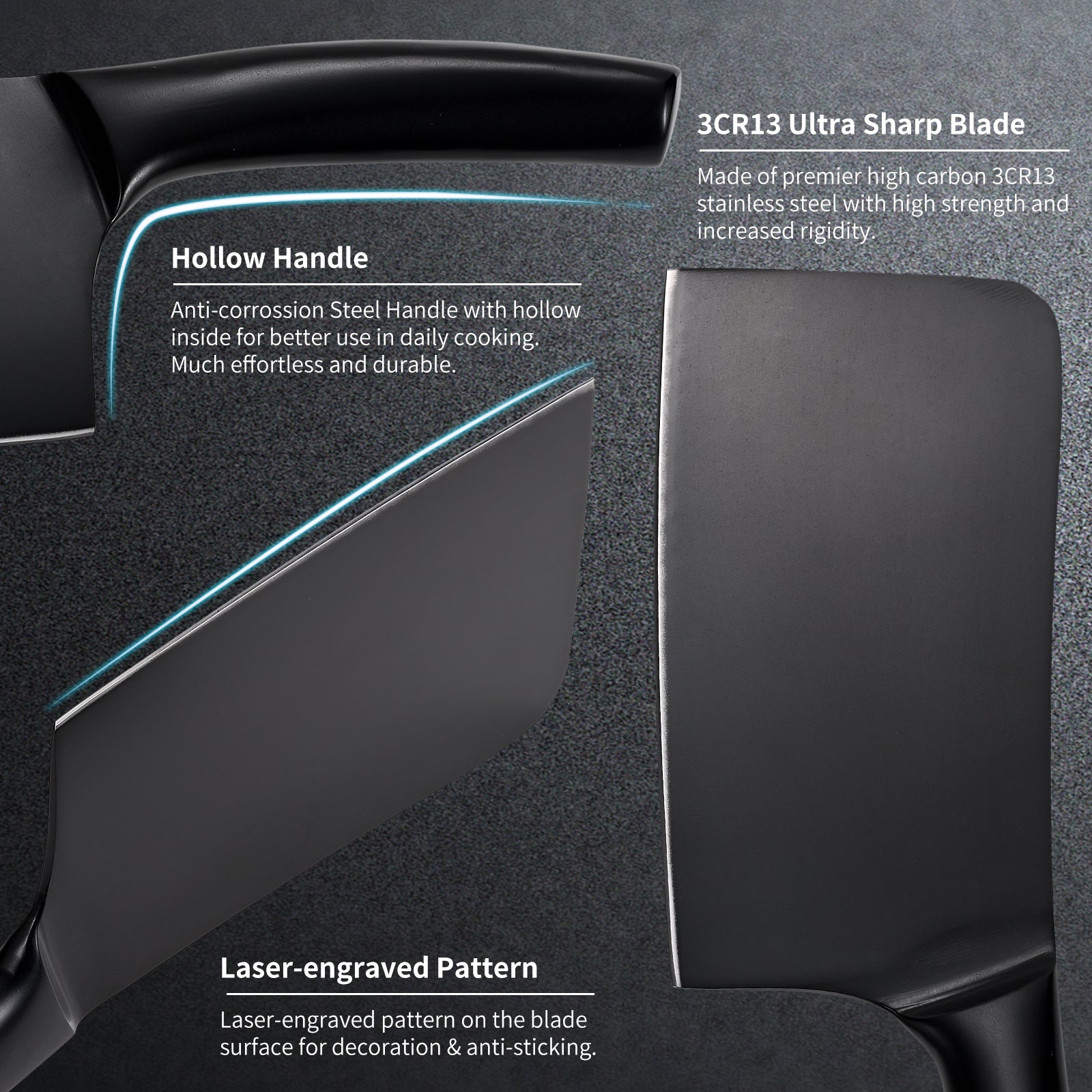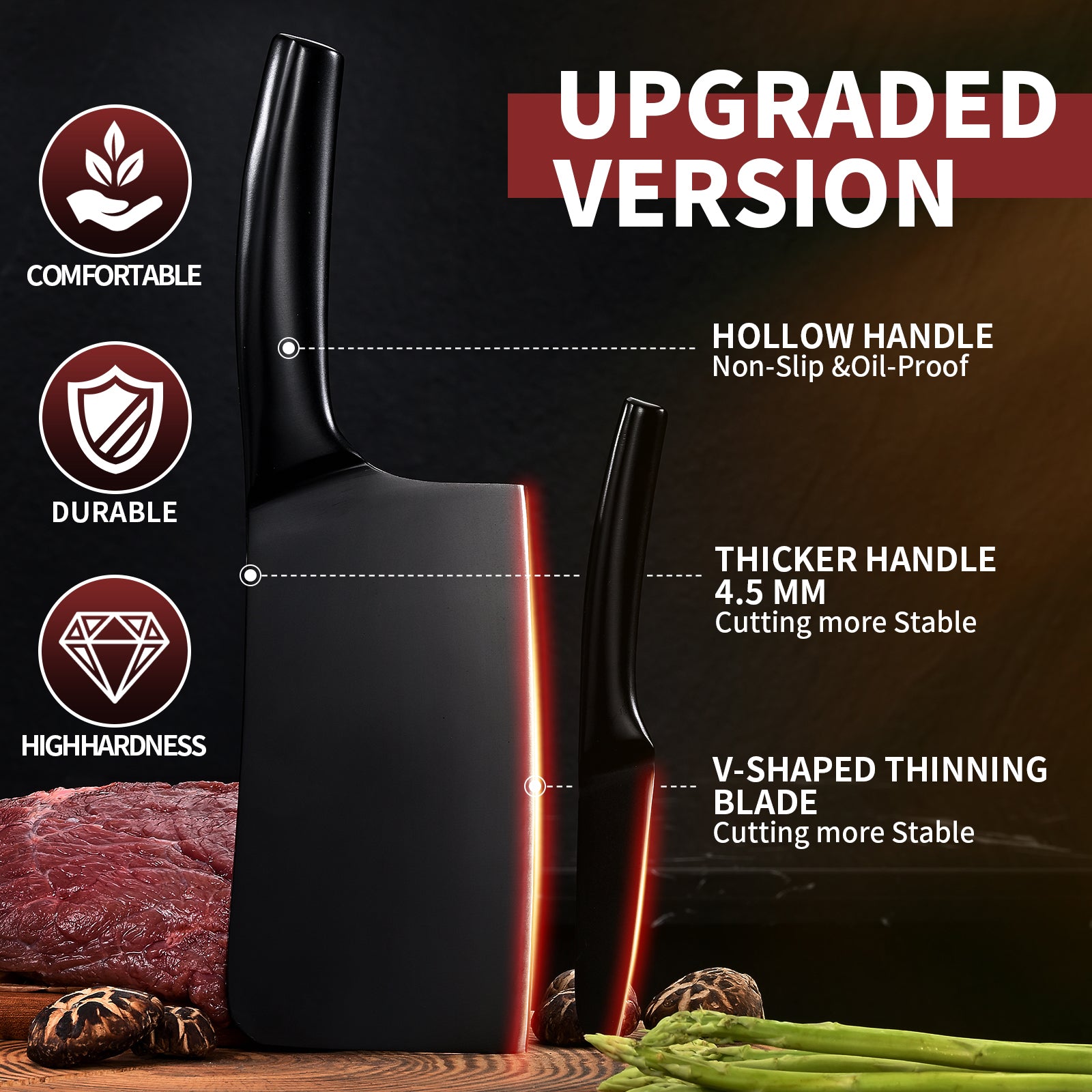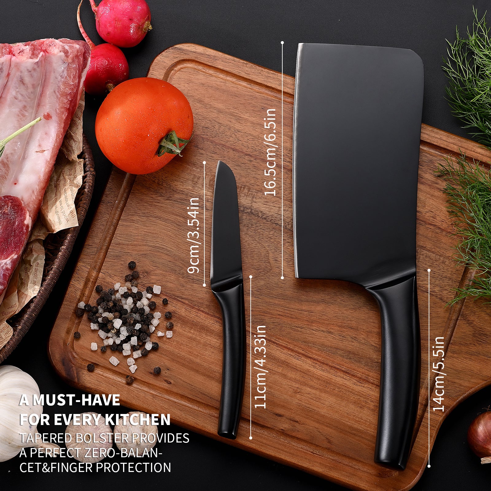 SHI BA ZI ZUO Chopping Knife and Fruit Knife,Black Ti Coating Kitchen Knife Set Meat Bone Chopper Meat Knife Paring Knife with Anti-Slip Hollow Handle
