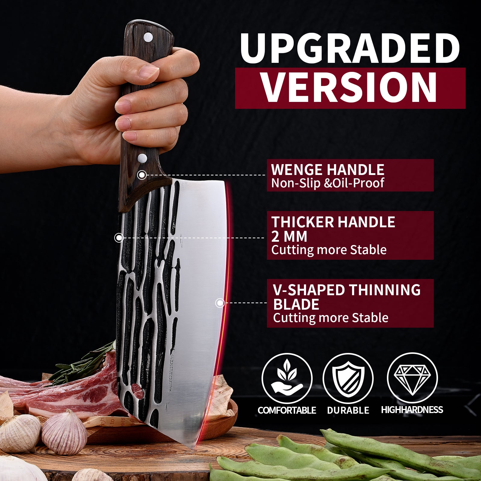 SHI BA ZI ZUO Forged Meat Cleaver Heavy Duty Kitchen Knife Chopping Knife for Vegetable and Meat Cutting,with Non-Slip Wooden Handle