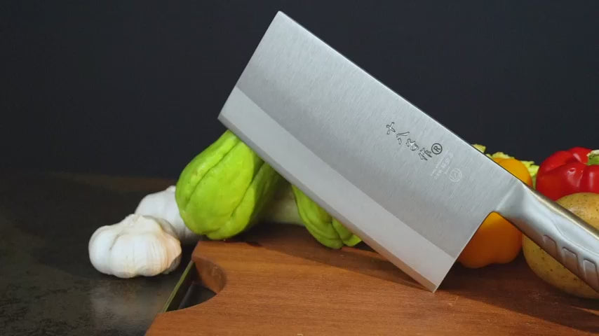 SHI BA ZI ZUO Couteau de chef chinois Couteau hachoir couperet de 8 pouces pour trancher la viande, les légumes et hacher les petits os