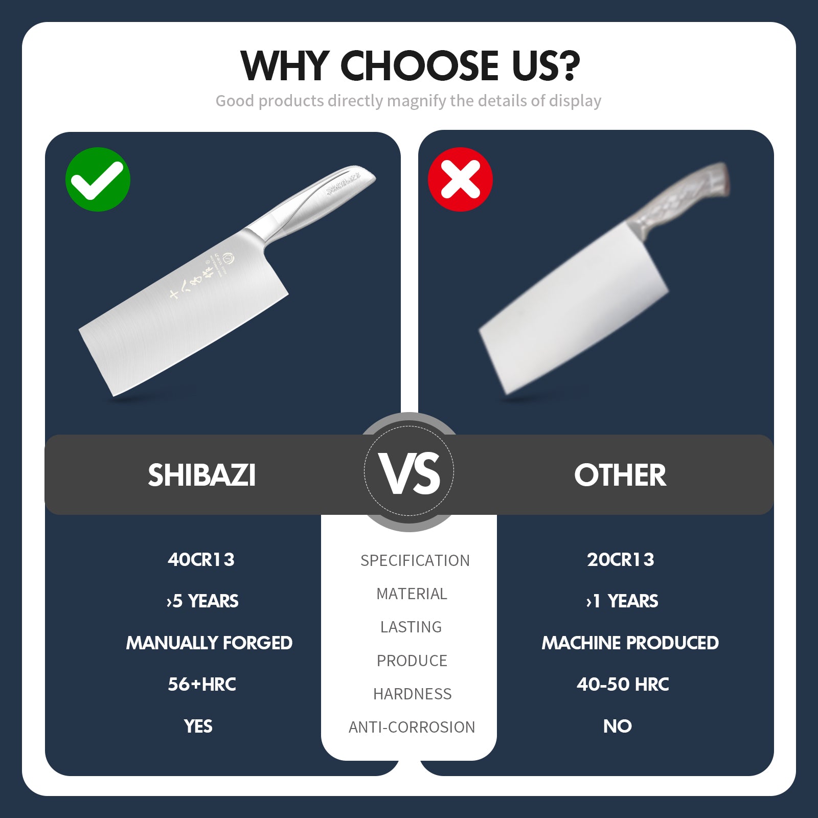 SHI BA ZI ZUO Meat and Vegetable Cleaver Knife,Professional Kitchen Knife with Ergonomic Stainless Steel Handle