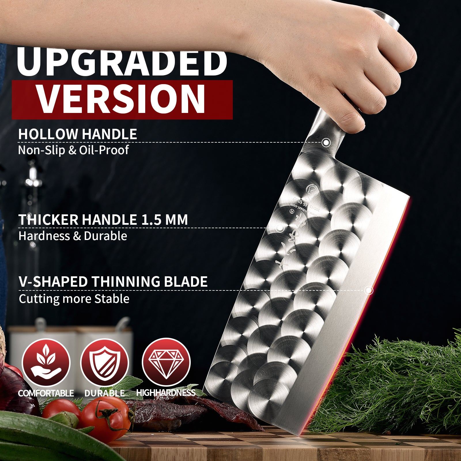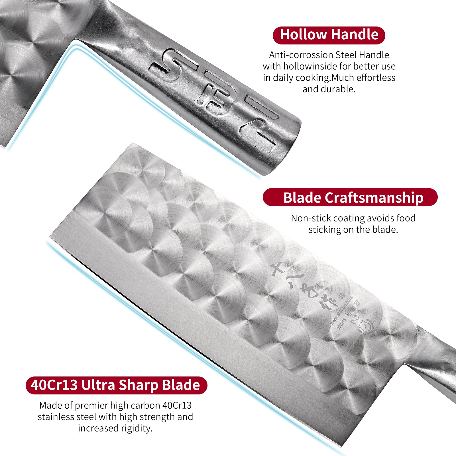 - Premium Stainless steel - 3 layer high quality clad stainless steel of high carbon core steel performs excellent hardness, durability and sharpness maintaining. Outside layers of low carbon steel does well in toughness, corrosion resistance and plasticity. The combination of two steels makes the Cleaver Knife perfectly work