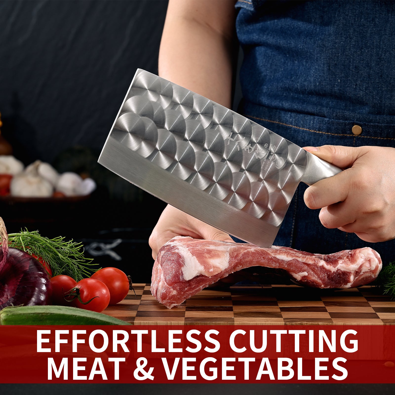 - Full Purpose Cleaver - Ultra sharp blade edge design and well balance of this knife make it perfectly for cutting, slicing, dicing and mincing meat, vegetable. Wide blade is able to smash garlic. It is suitable for homes and restaurants.