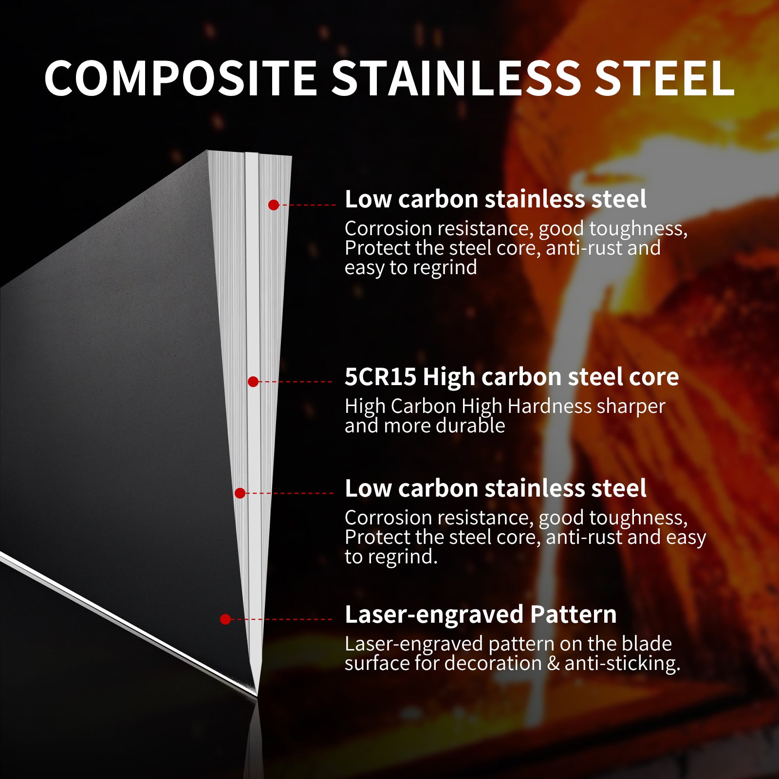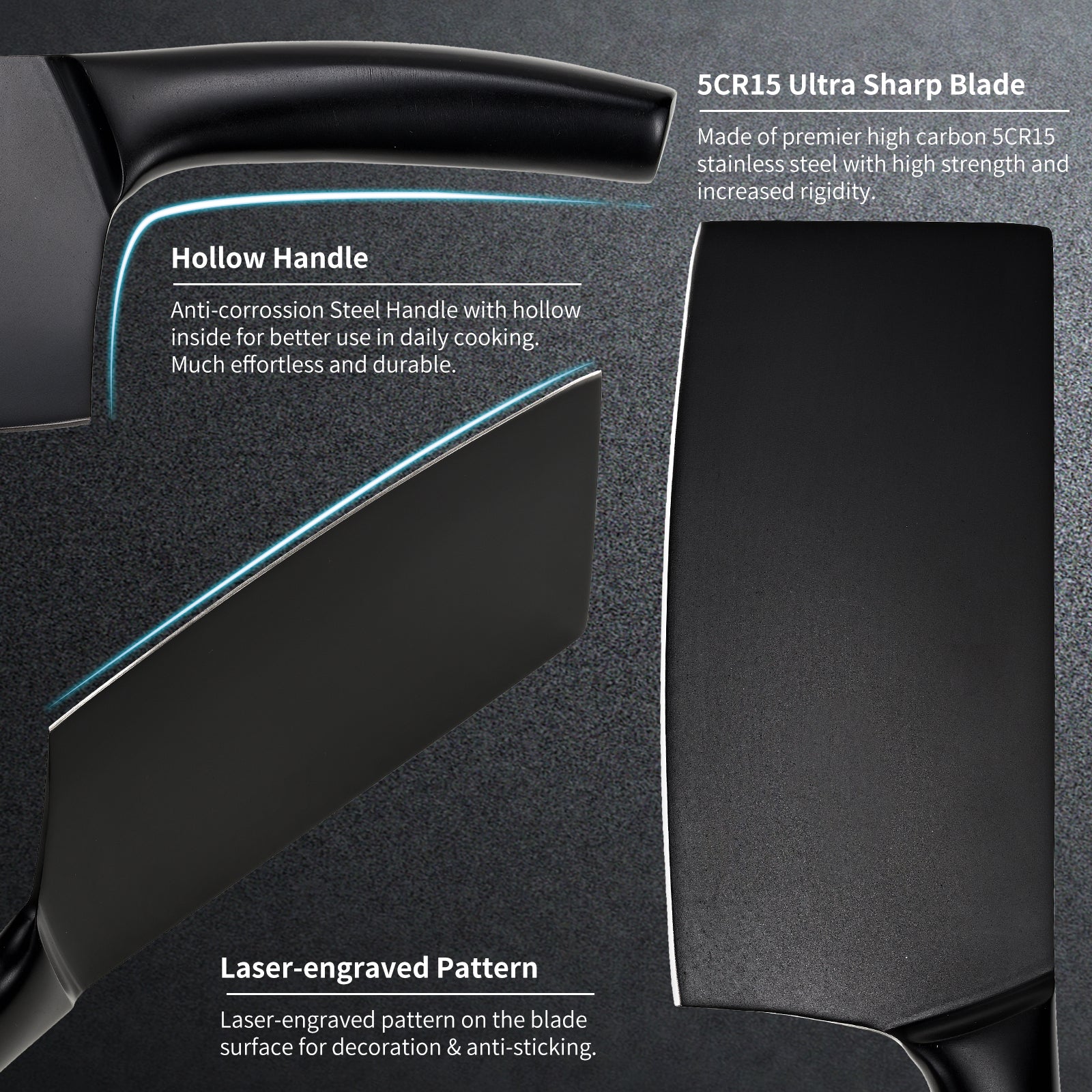 - 【Ergonomic Design Handle】Anti-corrossion Steel Handle with hollow inside for better use in daily cooking.The ergonomically designed handle provides a more comfortable holding, assisting you in easily completing cooking tasks.Much effortless and durable.