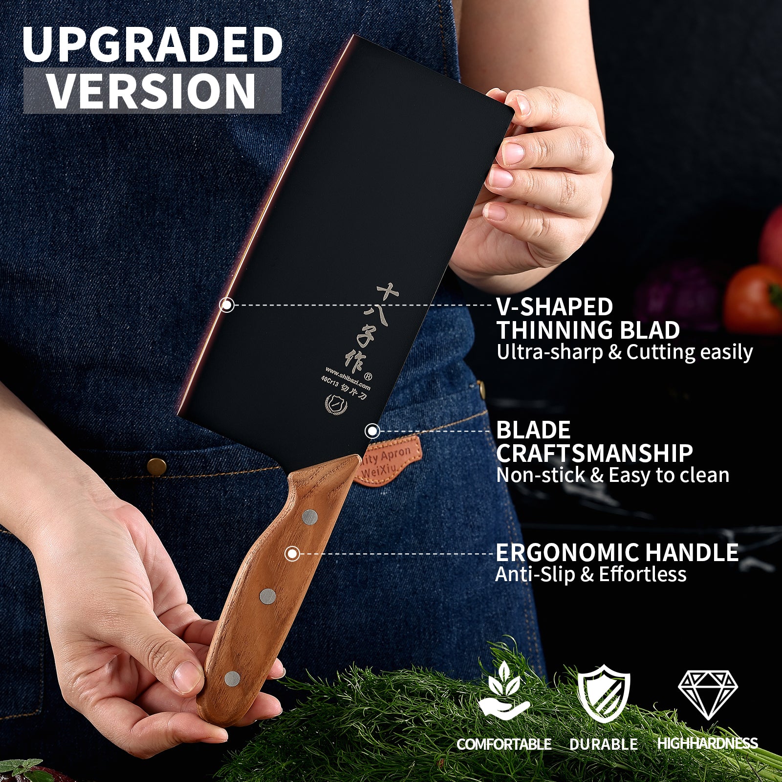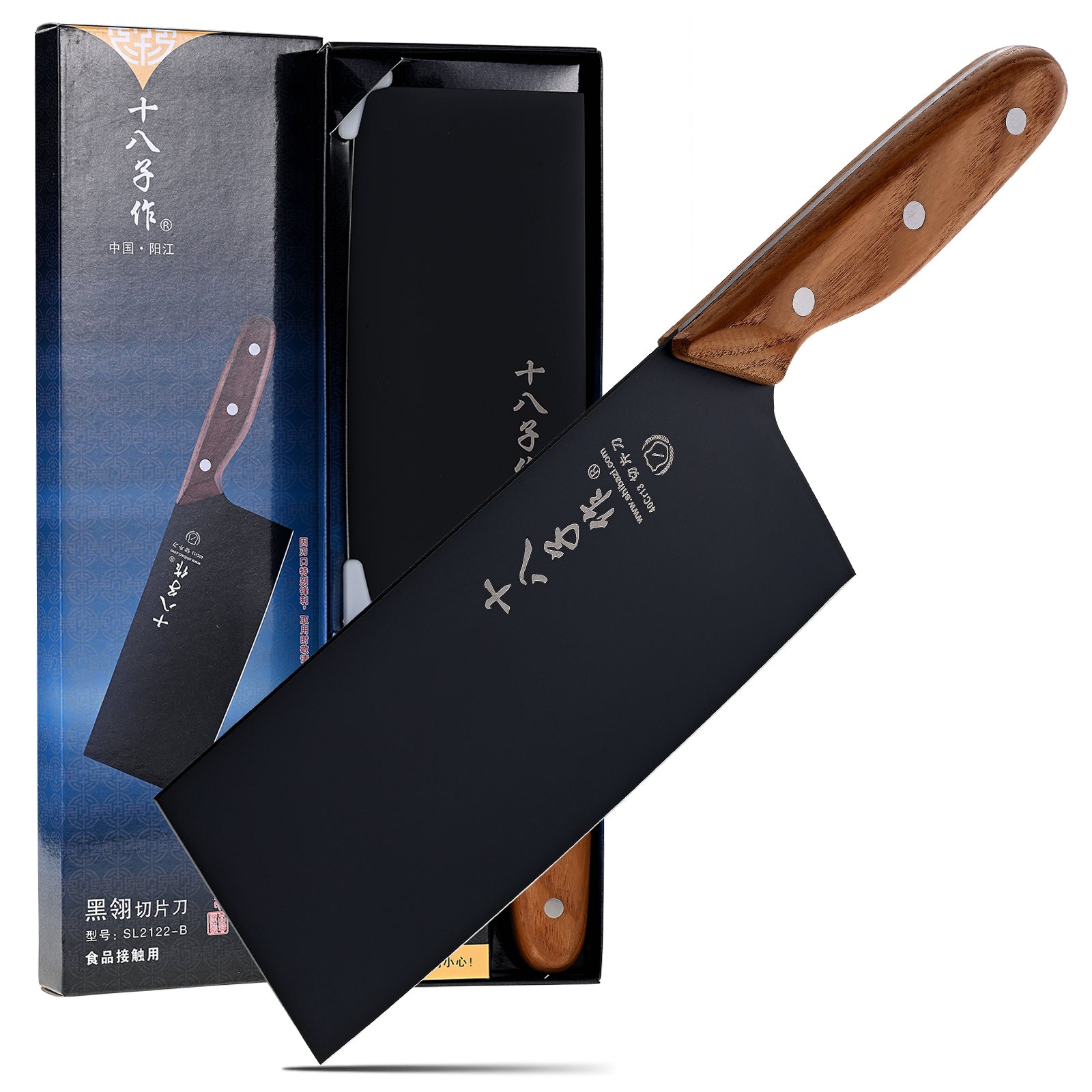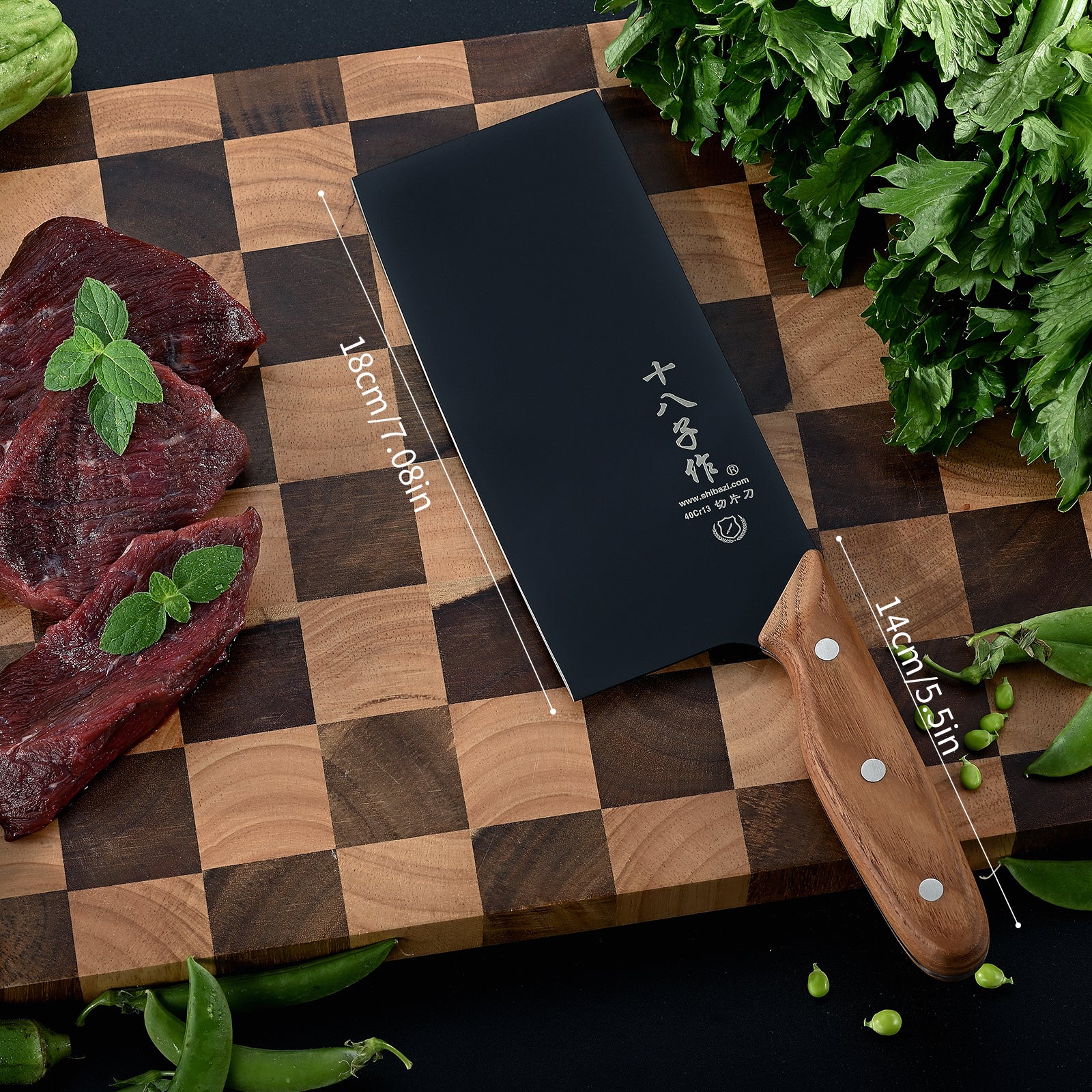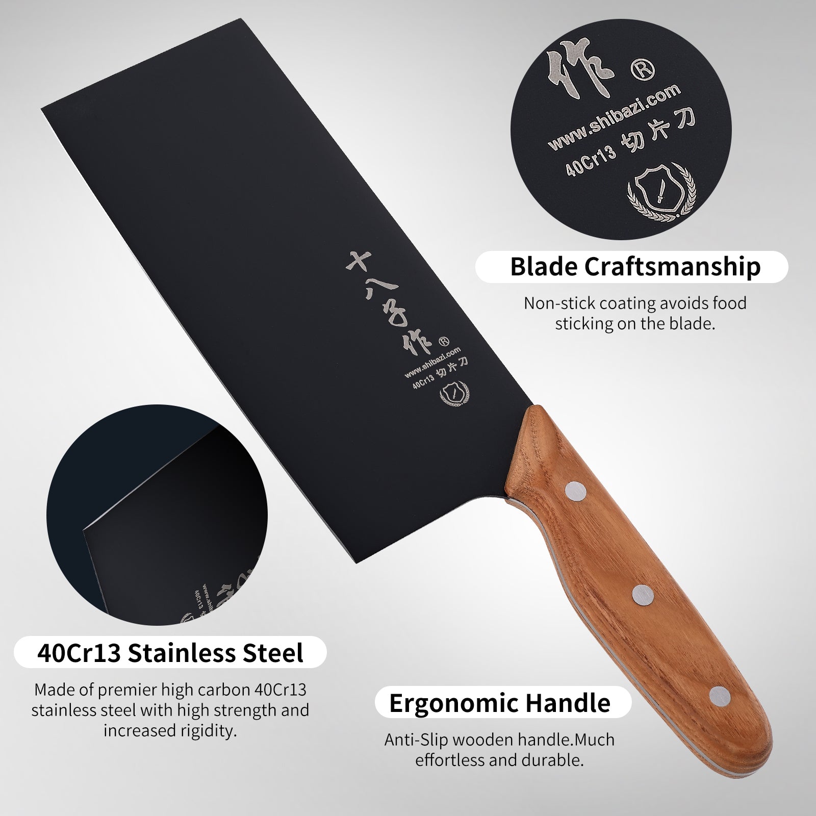 SHI BA ZI ZUO Meat Cleaver Knife Chinese Chef Knife Stainless Steel Slicer Cleaver with Anti-Slip Wooden Handle