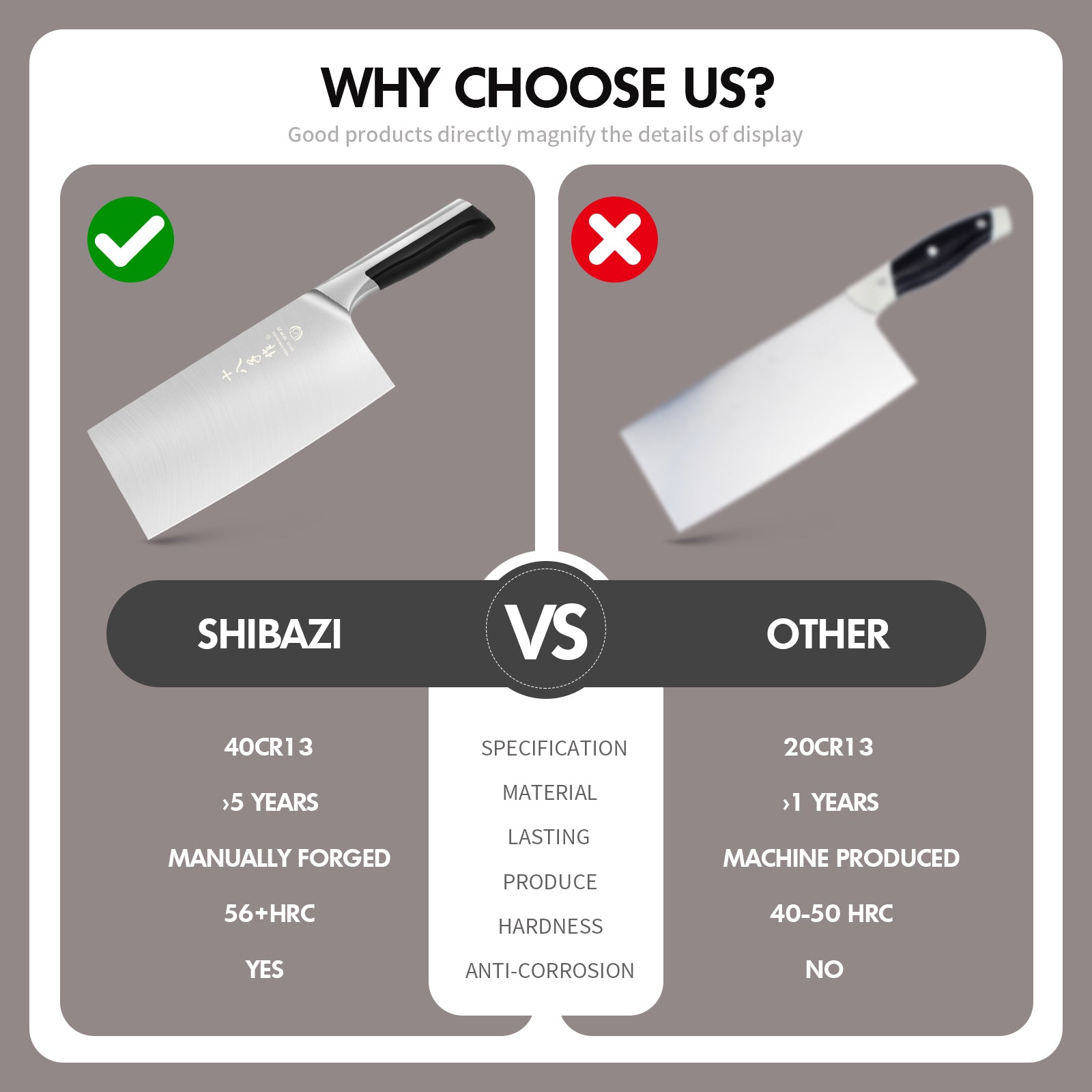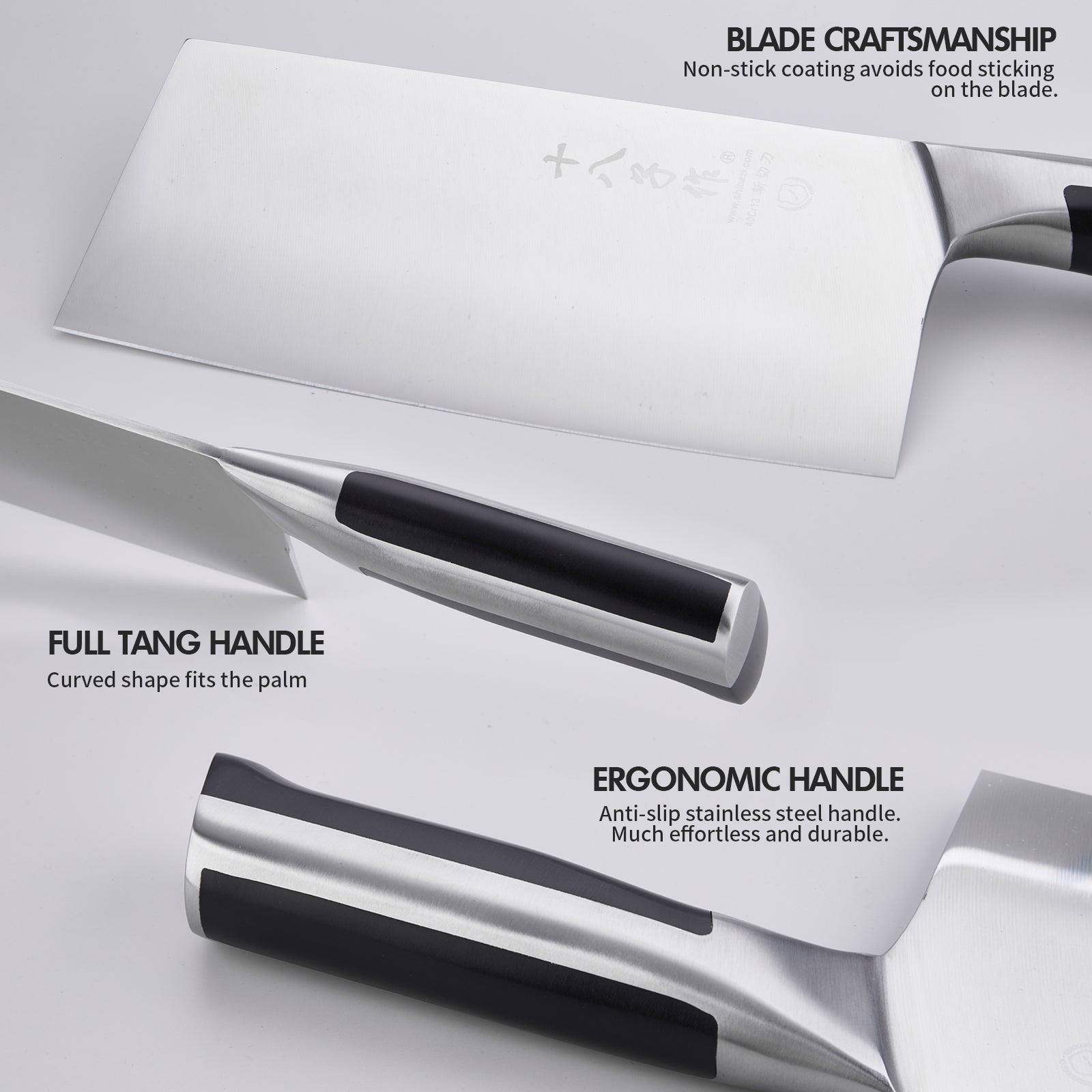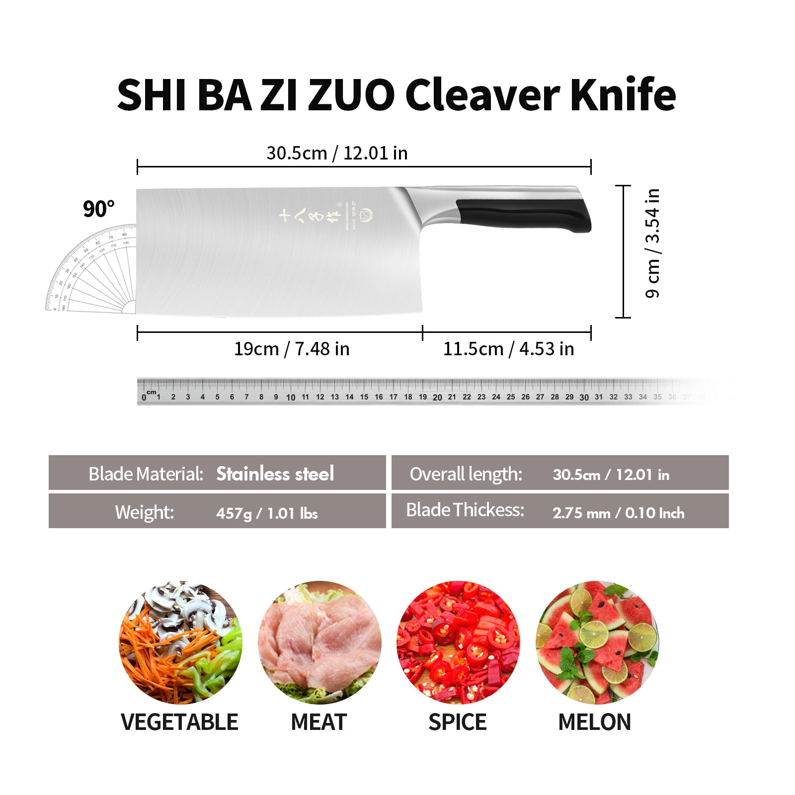 SHI BA ZI ZUO Meat Cleaver Knife,Stainless Steel Butcher Knife with Ergonomic Handle,Professional Kitchen Knife for Home Kitchen and Restaurant