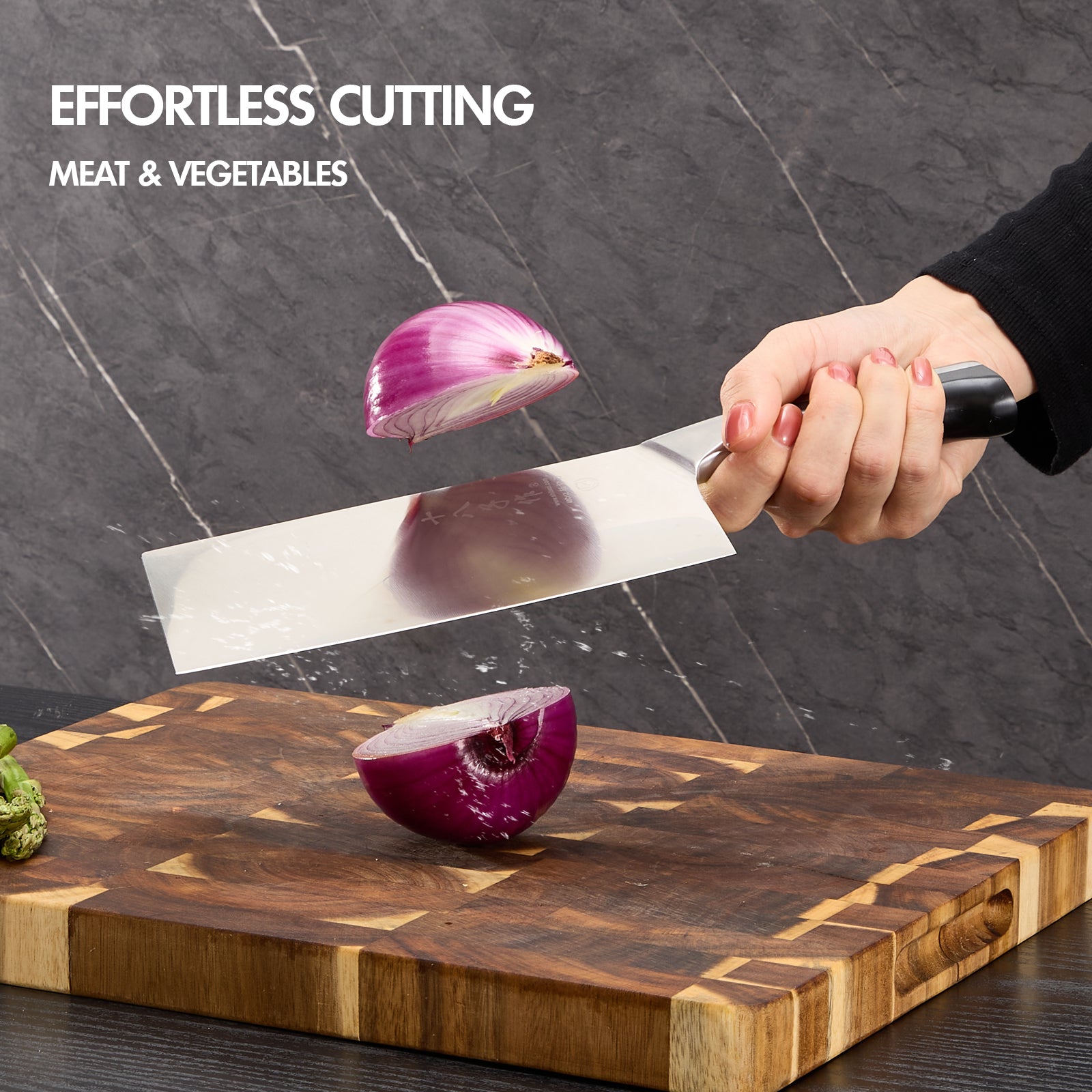 - MultiFunctions Kitchen Knife - Ultra sharp blade edge design and well balance of this knife make it perfectly for cutting, slicing, dicing and mincing meat, vegetable. It is suitable for homes and restaurants.