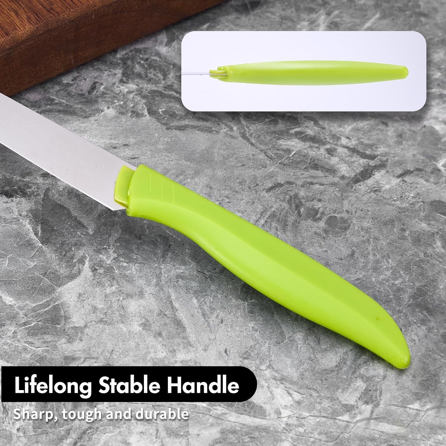 - 【Ergonomic PP Handle】The Ergonomic PP handle of this peeling knife minimizes wrist tension while providing a secure, comfortable grip no matter your hand size or where you grip. Even after prolonged use, your palm and wrist will not fatigue. The handle of this knife is skin-friendly, which can perfectly fit your palm to improve cutting efficiency.
