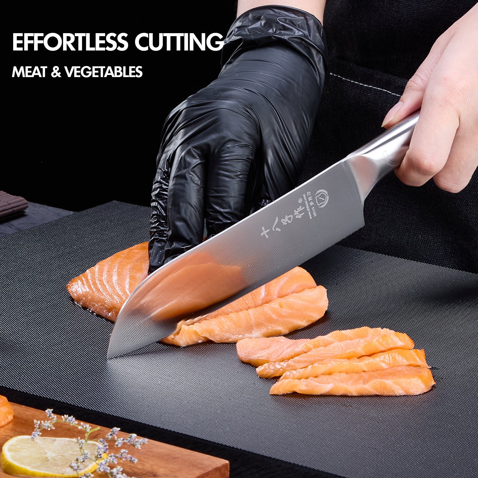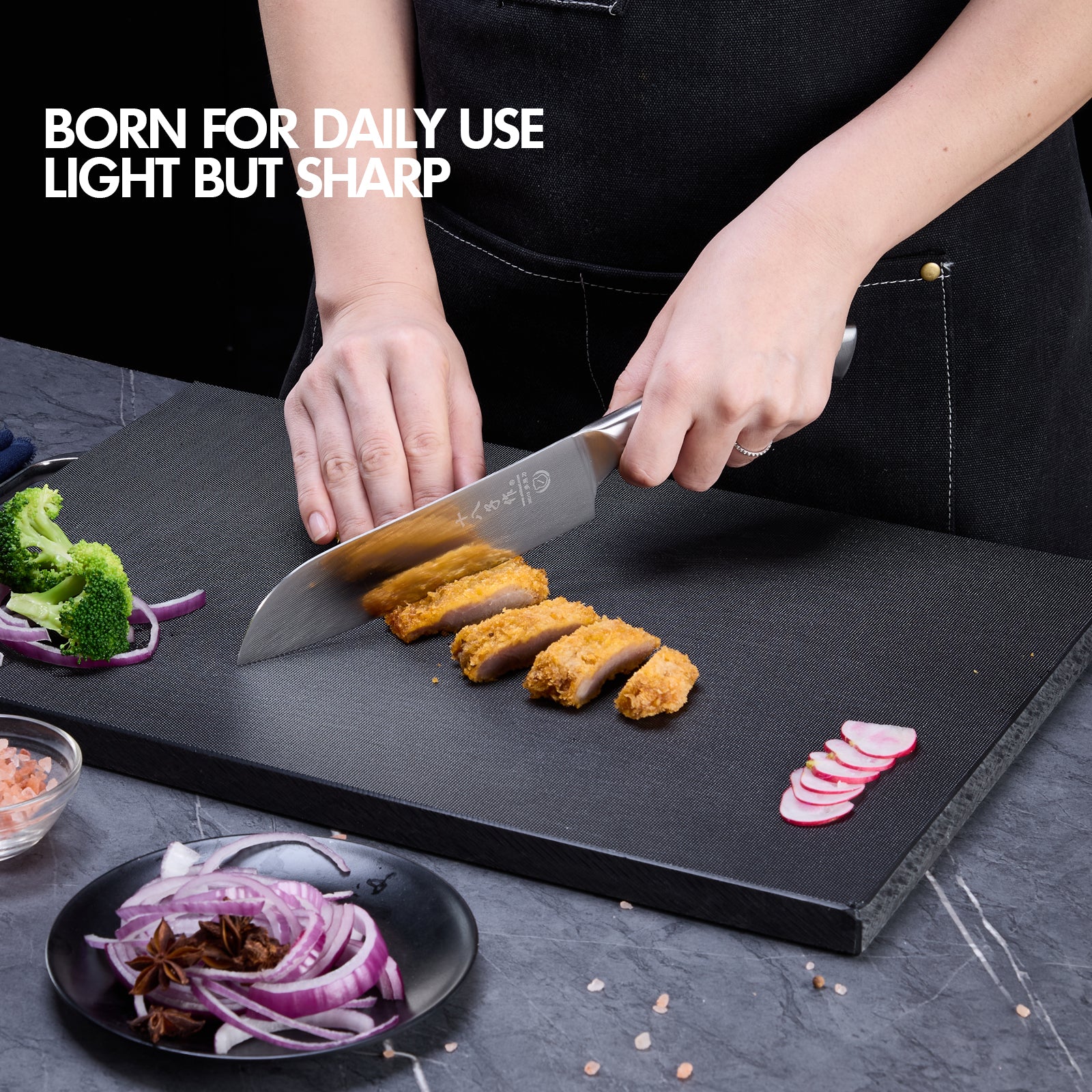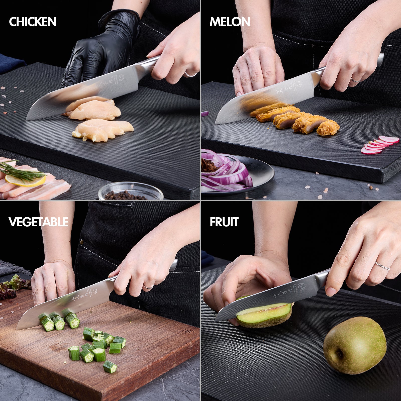 - 【Multifunctional knife set】This kitchen knife set includes 2 razor-sharp knives: a santoku knife and a fruit knife.Whether you're slicing meat,vegetables,dicing herbs,or prepping fruits, each kitchen knife of this set is designed to handle a variety of tasks effortlessly. Perfect for both professional chefs and home cooking enthusiasts.