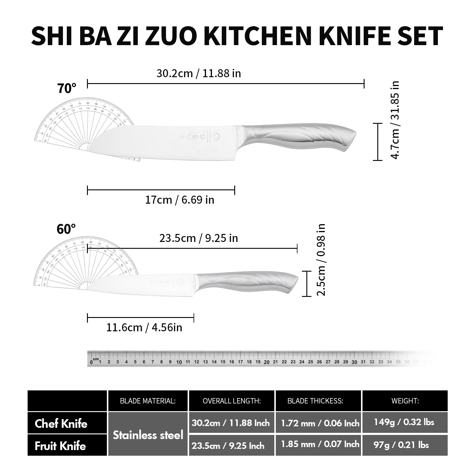 SHI BA ZI ZUO Santoku Knife and Fruit Knife,2-Piece Professional Kitchen Knife Set Chef Knife with Ergonomic Handle Stainless Steel for Kitchen and Restaurant